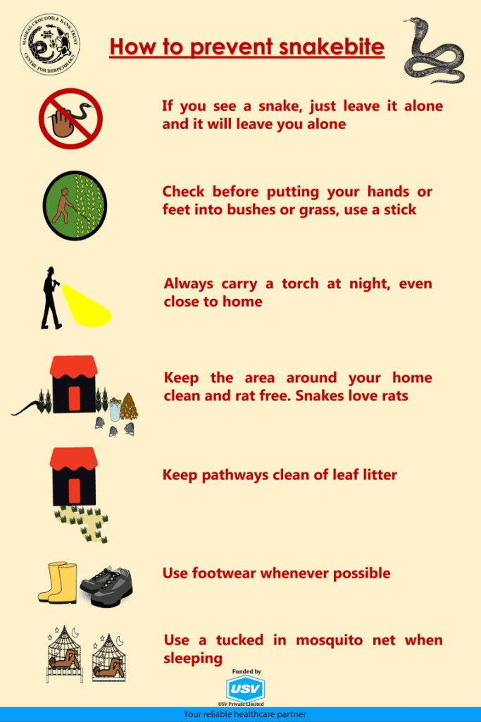 A simple reminder of what real snakebite prevention actually looks like: awareness, caution, visibility, footwear, and basic habitat management.